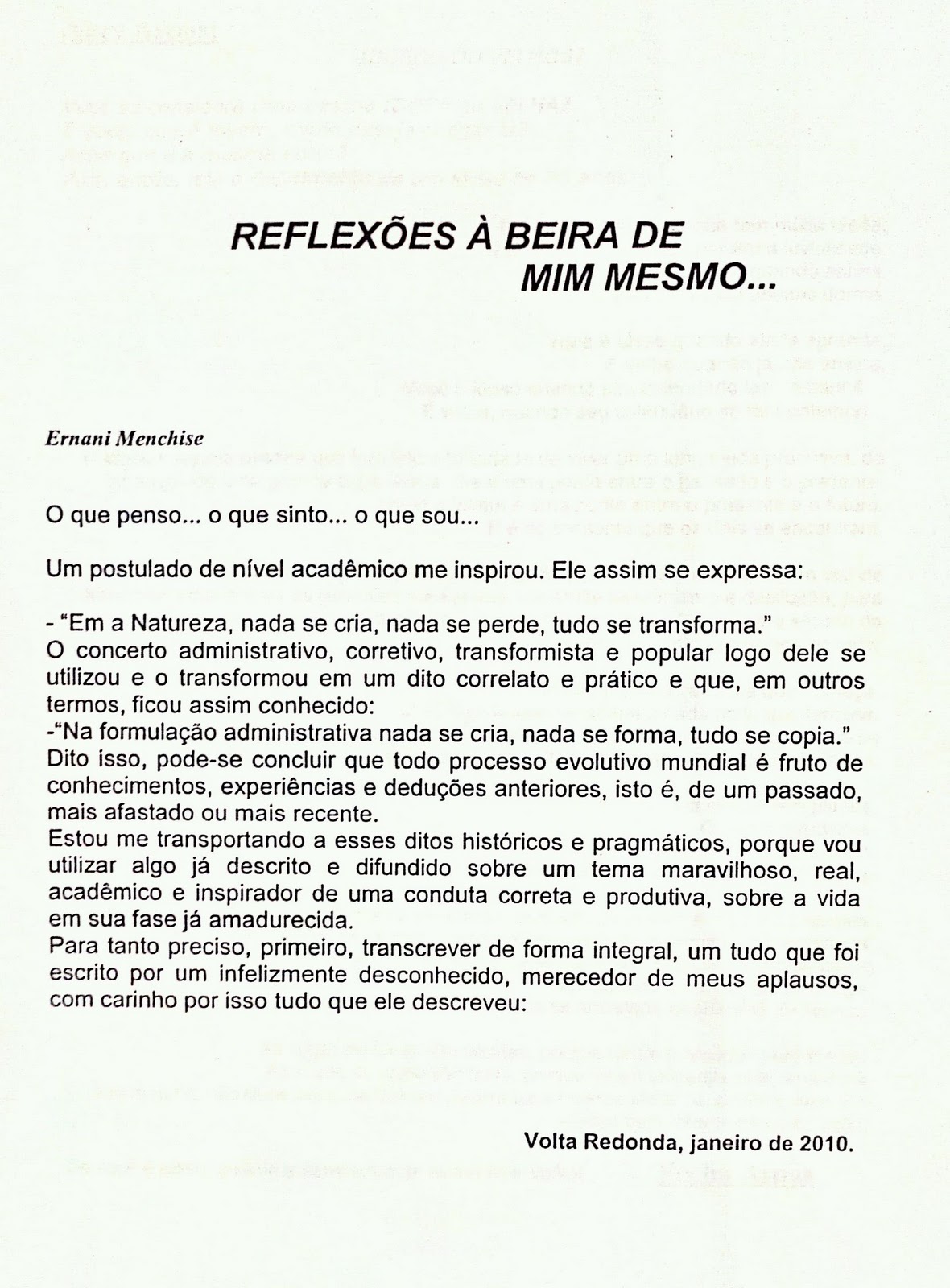 O que sou hoje? Acho que descobri uma parte de mim; a outra terei que artesanalmente concebê-la para que seja recuperada e restabelecida pela influência boa que tenho recebido de um Anjo que se harmoniza em minha mente, discutindo toda a minha fraqueza e insensatez.